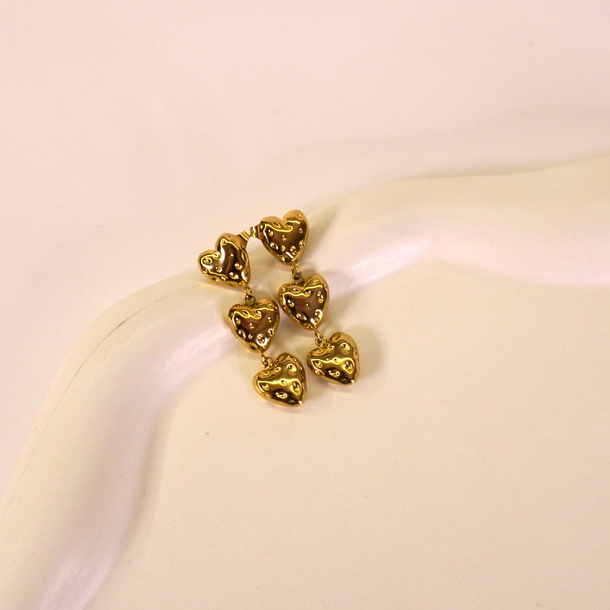The Allie earrings are a playful cascade of love—three delicate heart charms stacked in a dreamy tier. Feminine, flirty, and full of charm, they’re designed to dangle with you from golden hour dates to late-night dancing. Lightweight yet eye-catching, Allie brings a soft glam vibe with every sway.