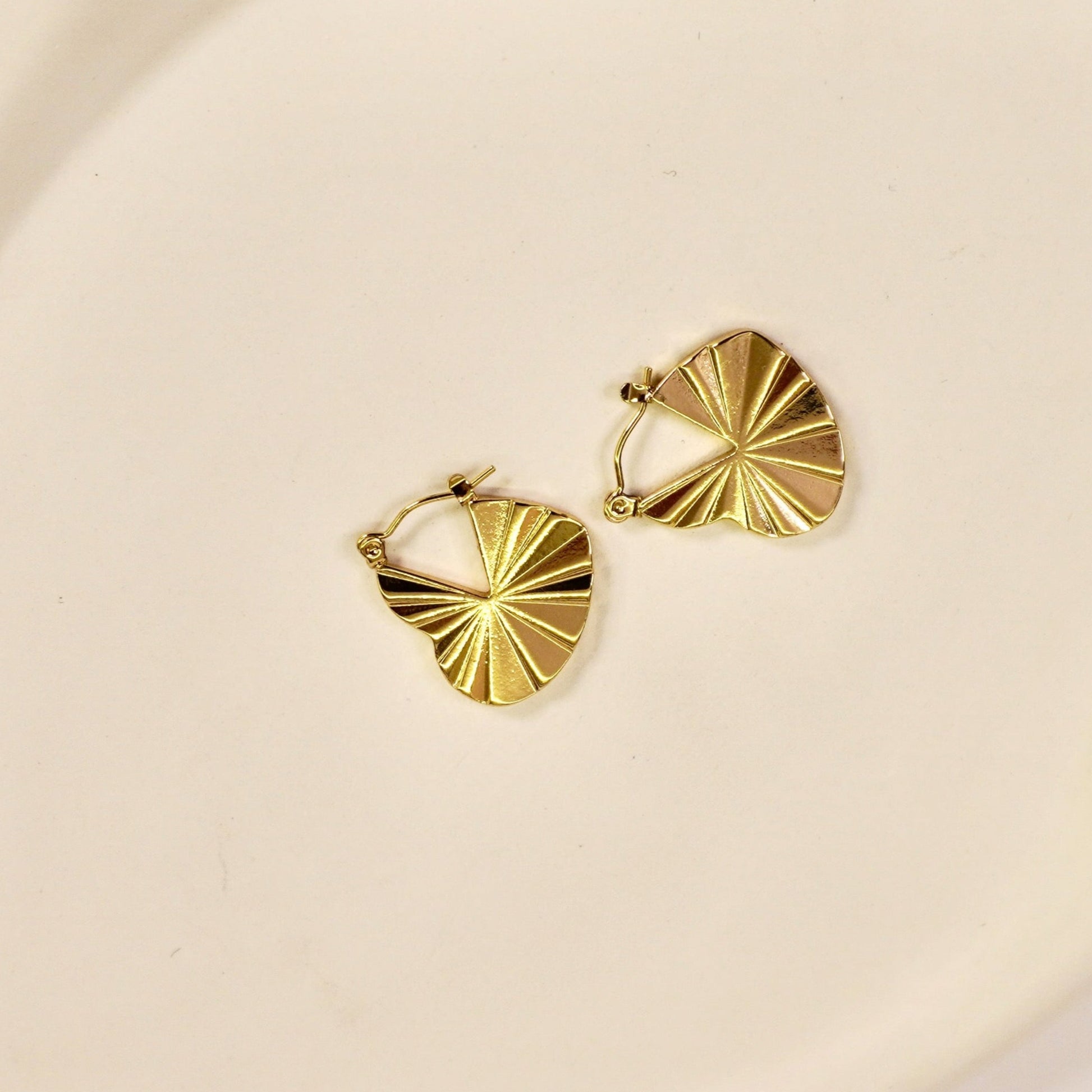 The Geometric Radial Heart Hoops offer a modern twist on the classic heart design. Their unique radial pattern creates a sense of movement and depth, while the heart shape adds an element of timeless romance. These earrings make a perfect balance between contemporary design and classic elegance, ideal for someone who loves to stand out while keeping things chic.