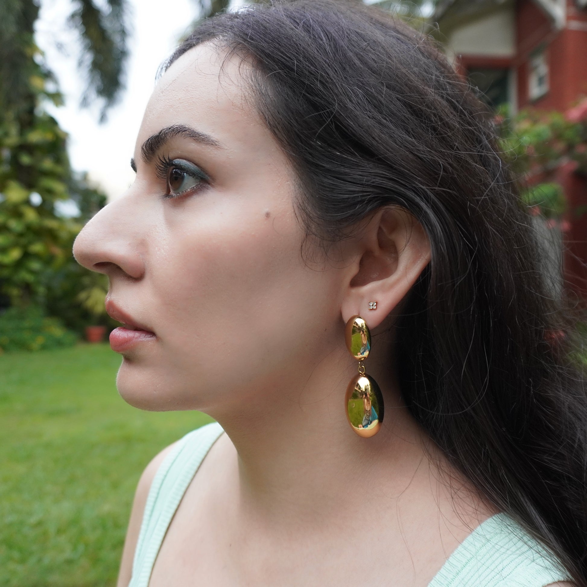 Tanya brings the drama in the most elegant way. These oversized oval drops are sleek, smooth, and seriously eye-catching—designed for the baddie who walks in and owns the room. Lightweight yet statement-making, they’re the kind of earrings that do all the talking.