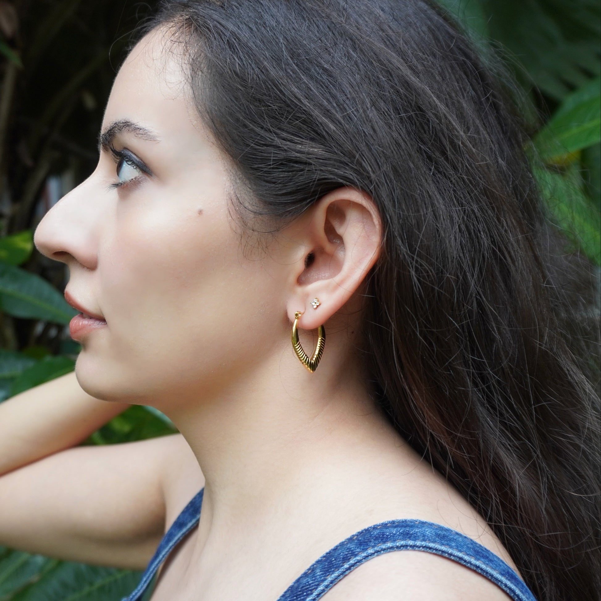 Sleek. Textured. Unapologetically bold. The Tia Hoops bring sculpted edges and a striking pointed form that redefines power dressing. They’re that subtle statement piece—perfect for the girl who can command a room without saying a word.